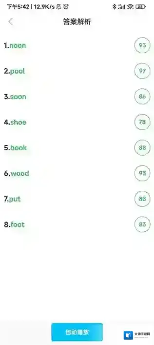 6、点击下方的答案解析还能够回顾自己的单词发音;