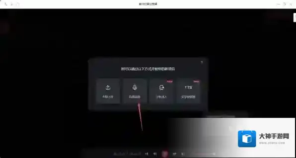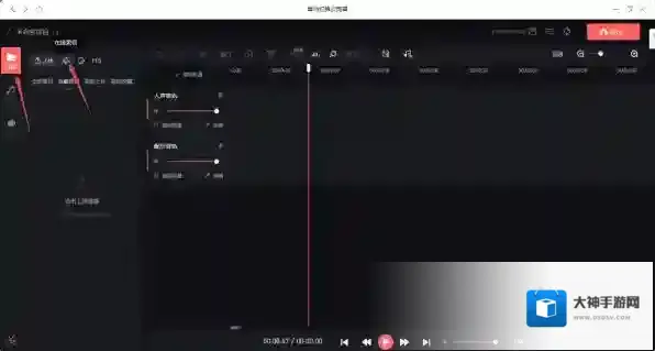 第六步,而有的小伙伴可能直接就进入了剪辑界面,并没有弹出功能选择的提示窗口,此时我们只需要在剪辑界面,点击音频选项右侧的麦克风按钮,就可以调出录音的窗口了。