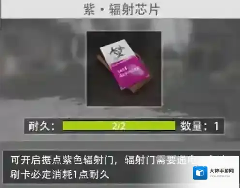 7、蓝-辐射芯片:刷新地点绿-辐射芯片卡房内、各大物资点楼梯房顶。