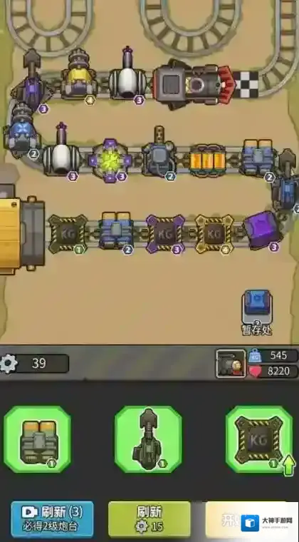 2、进入关卡后玩家需要将炮塔放在火车车厢上,相同的炮塔可以合并来提升等级。