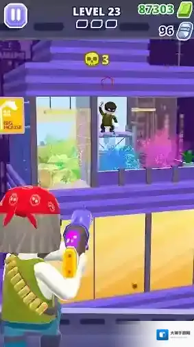 1、射杀身后无尽的追捕者,帮助人质逃脱。使用炸药和其他游戏内物品消灭多个敌人,或依靠精妙的射击尽可能多地消灭坏人。向敌人发起猛烈攻击,但务必注意不要误伤人质。