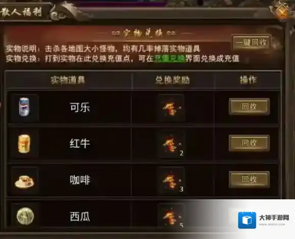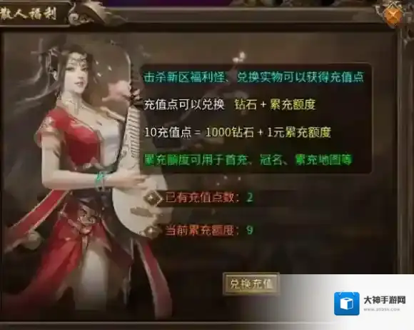 实物兑换:打到实物在此兑换充值点,可在充值兑换界面兑换成充值