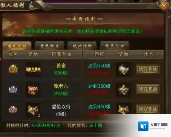 合区后成就福利活动关闭,活动排名奖励以邮件的形式发送!
