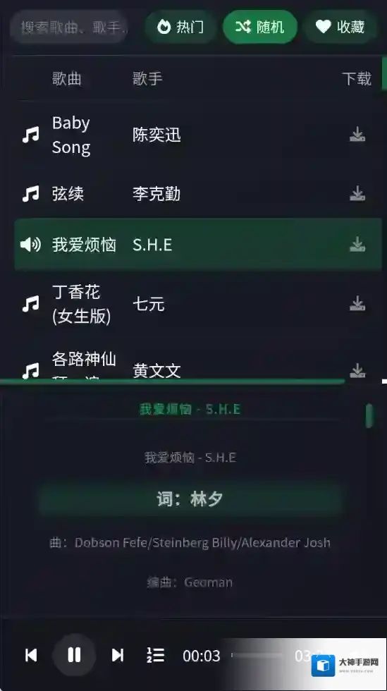 2、用户可以搜索自己喜欢的音乐,随时随地畅听各种音乐。
