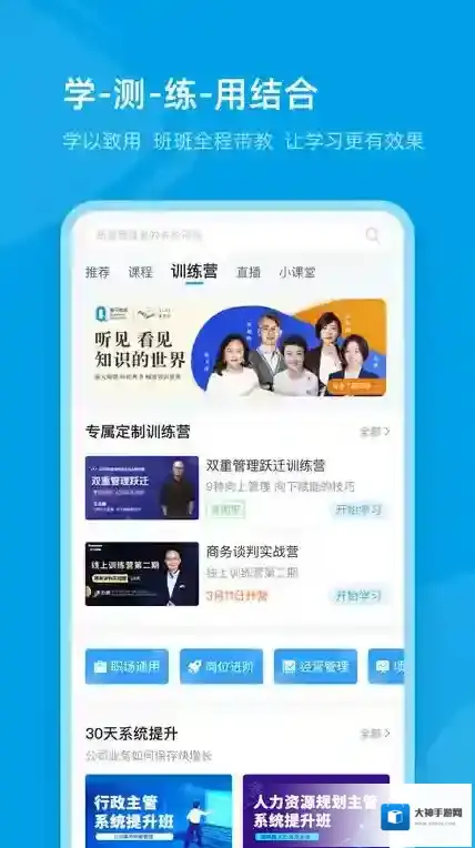 人才培训类手机软件,里面有着各种各样的优质培训知识信息,这里可以体验到大学继续教育课程,更加全面和精准,有基础知识的强化,有企业管理的培训等你所有可以想到的企业培训上面都是应有尽有,还可以不断的武装自己,掌握到更加全面的资讯!