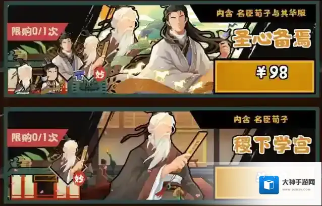兰陵令-荀子与其华服神明自得礼包限时返场,王上们可根据自身需求进行挑选呢~
