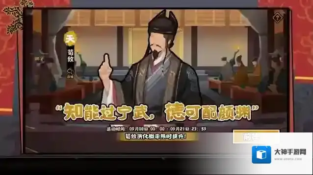 智计百出-荀攸限时演化卡池即将上线,“知能过宁武,德可配颜渊”。