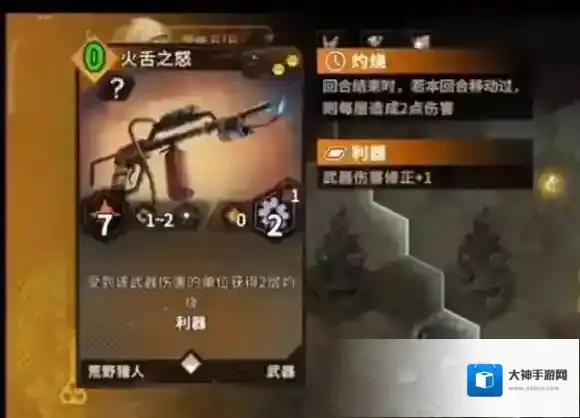 攻击:7。射程:1~2。范围:单格。耐久:2。冷却时间:1回合。有特殊效果。