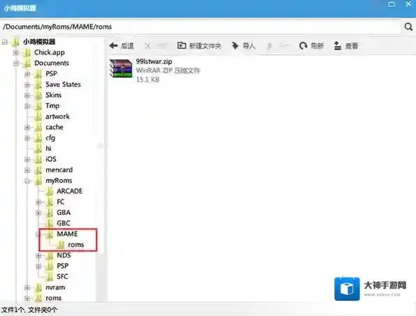 4、其他模拟器的ROM把zip包导入相应文件夹即可;