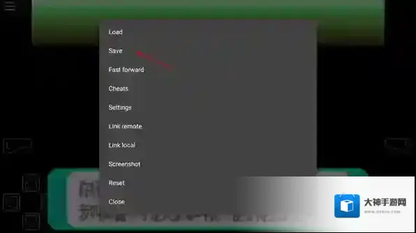 5、如果需要保存当前游戏进度的话,点击左上角菜单按钮,找到“save”保存即可。