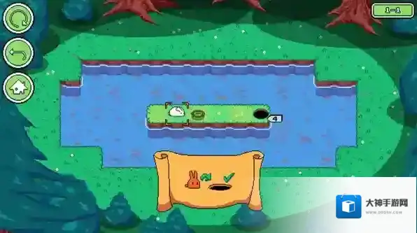 4.所有兔子进入洞穴即通关,可移动步数显示在洞穴旁。